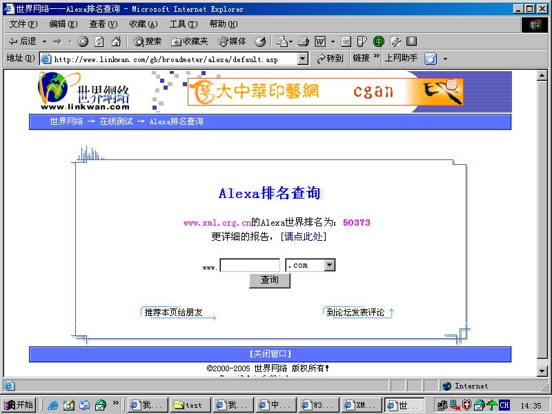 * 贴子主题: www.xml.org.cn世界排名50373位 举报  打印  推荐  IE收藏夹